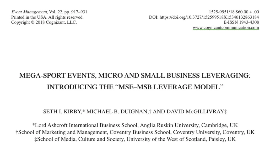 Micro and small business (MSB) interests legitimize mega-sport event (MSE) candidature bids. Yet, MSB interests can be sidelined in the event lead up, live staging, and legacy periods. This article provides a detailed: 1) review of MSE impacts on existing MSBs residing within targeted host communities, 2) conceptual and practical examination of MSE leveraging opportunities, 3) synthesis of good inclusionary practices identified in previous MSE case studies. As a result, a series of general and specific ways MSEs can foster MSB leveraging and legitimize local interests are suggested. We present a comprehensive analysis of key works since mid-1990s related to the themes identified above. Our analysis identifies that there is limited conceptual and empirical research on MSB impact and leveraging activities in the context of MSEs, yet significant evidence points to negative experiences, disruption, and displacement effects on residential (host) communities. We purposively focus on good practice in the context of other MSEs from the Olympics Games (e.g., London 2012, Rio 2016) and FIFA World Cup (e.g., South Africa, 2010) to inform recommendations and manage- rial implications. We outline a systematic series of ways MSBs can be structurally excluded from accessing MSE leveraging opportunities. Building on Chalip’s widely adopted event leverage model (ELM), we present the “MSE–MSB Leverage Model” to illustrate how MSEs can (re)position MSBs as legitimate stakeholders to support greater leveraging opportunities and better (re)distribute event benefits back into host communities across planning and delivery stages. These range from reconfig- uring: 1) event planning principles and policies, 2) regulatory and trading environments, and 3) the development of MSB business-to-business networks and partnerships.