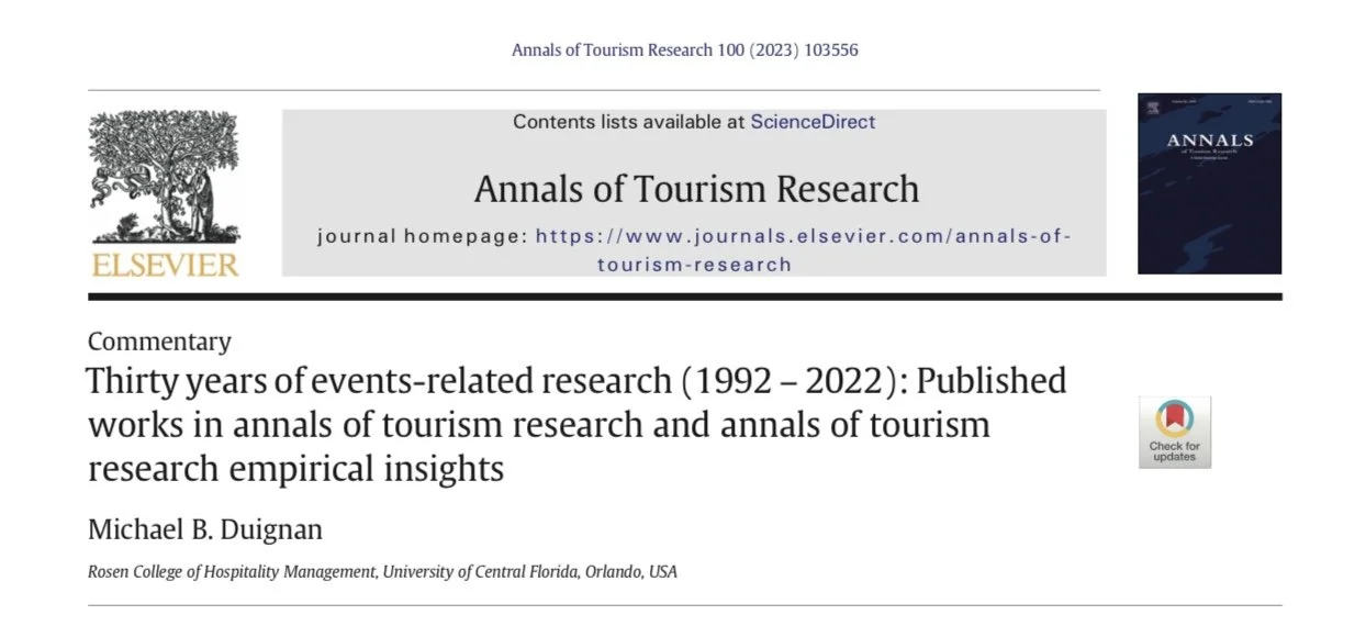 This commentary examines how events-related research has and increasingly contributes to tourism studies, and how these lines of argument have evolved over the last thirty years, pri- marily in Annals of Tourism Research. I explicate the theoretical features of events, how previ- ous work has conceptualized them, and why events are unique organizational settings to contribute to theory development. This is particularly significant as events are increasingly de- livered in public, cultural and tourist spaces – an extra-territorial shift with implications for the future study and practice of tourism. I close by calling for a more plural conception of events, inclusive of world events, which share similar conceptual features to cultural and sporting events that typically dominate social analysis in event and tourism studies.