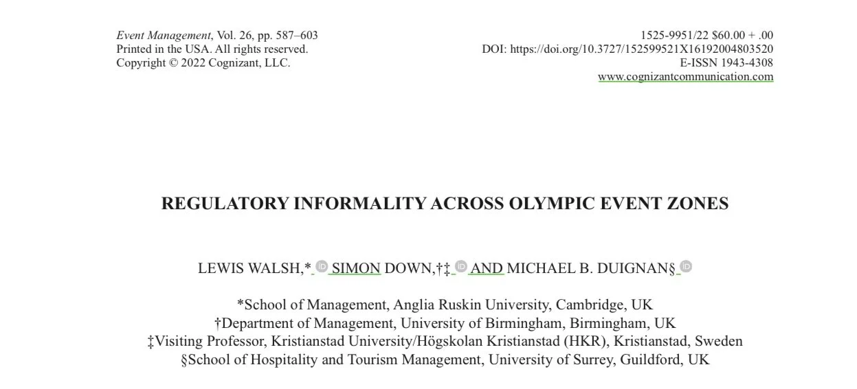 Mike’s portfolio of peer reviewed academic articles published in leading business, events, sports, tourism, AND DEVELOPMENT journals.